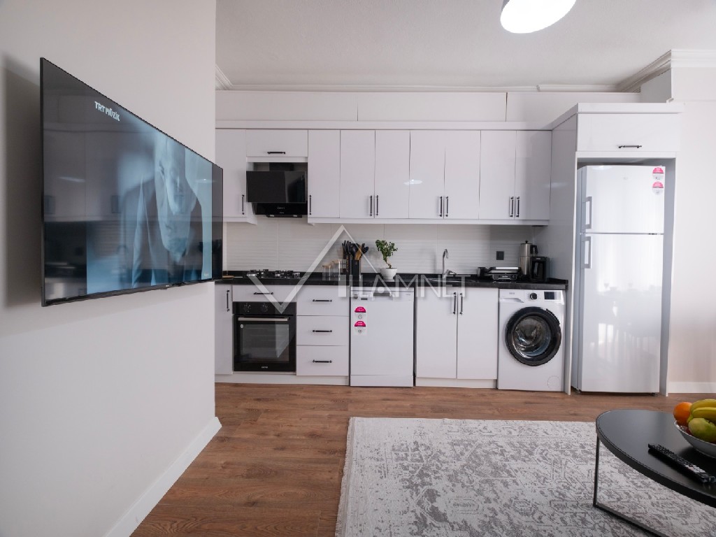 Açık mutfak salon ile ferah ve kullanışlı bir alan sunulmaktadır.