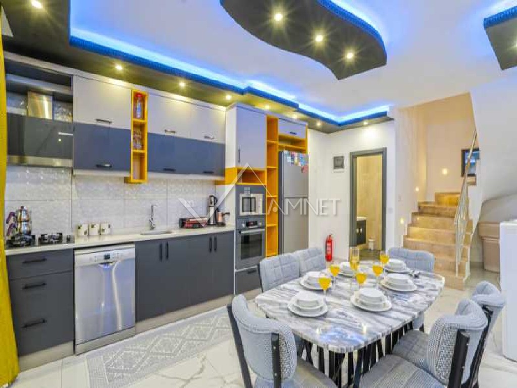 Mutfak : Modern Amerikan mutfakta bulaşık makinası, çamaşır makinası, buzdolabı, 4'lü ocak, fırın, elektrikli su ısıtıcı (kettle), tencere, tavalar, yemek takımı, çatal bıçak takımı, bardaklar mevcuttur.