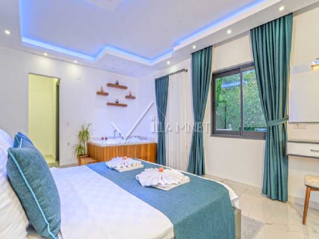 1. Yatak odası : 1 adet çift kişilik yatak, komodin, elbise dolabı, saç kurutma makinası, klima, Jakuzi, banyo ve tuvalet bulunmaktadır.
