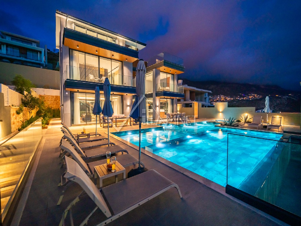 Villa Aura G: Antalya'nın en güzel tatil merkezlerinden biri olan Kalkan'ın Kalamar Mevkiinde konumlanmıştır. Her biri ebeveyn banyolu 5 yatak odasına ve 10 kişi konaklama kapasitesine sahiptir. Açık mutfaklı, modern ve kullanışlı bir salon ve salondan havuz başına direkt çıkış bulunmaktadır. Bahçede özel havuzu bulunmaktadır.
