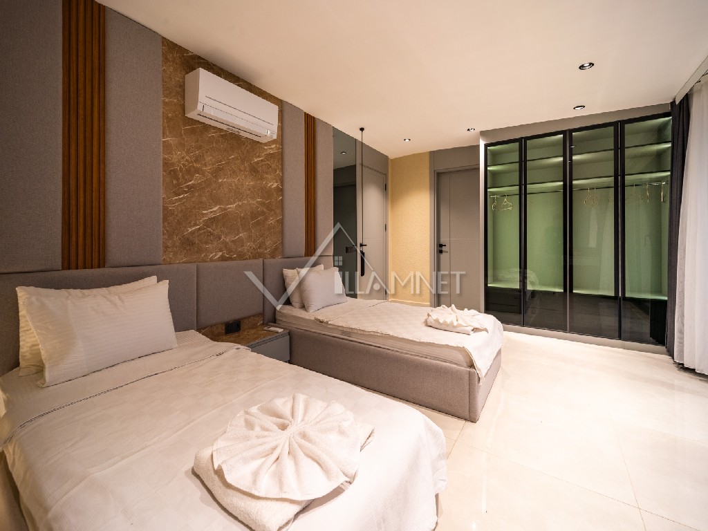 5. Yatak Odası: 2 adet tek kişilik yatak, komodin, elbise dolabı, klima, banyo ve tuvalet bulunmaktadır.