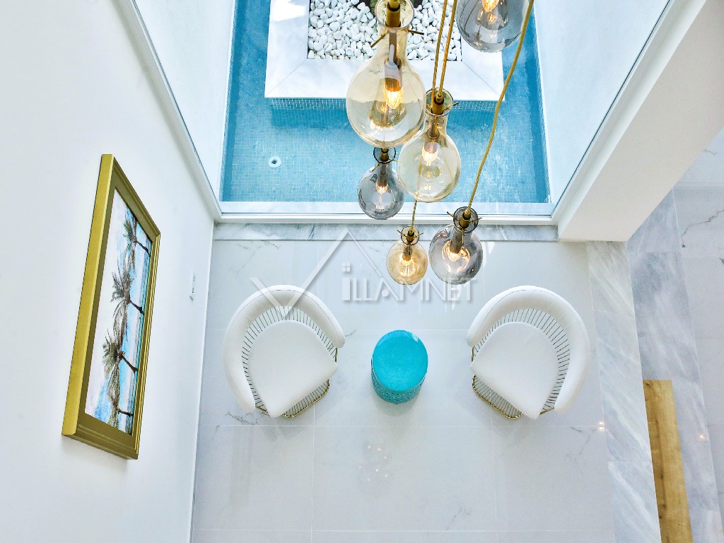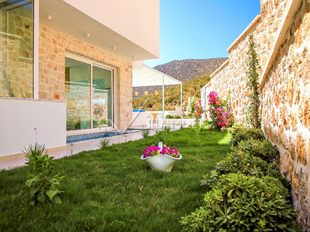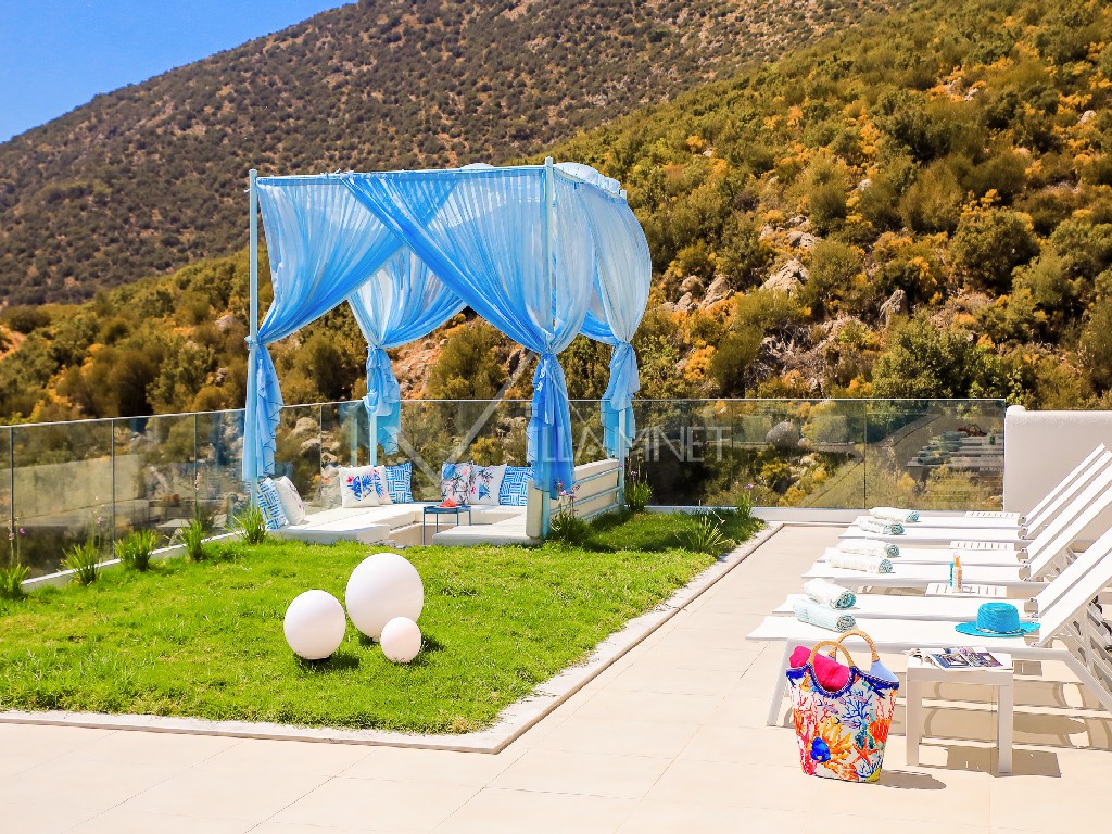 Bahçe : Özel yüzme havuzu, şezlonglar, şemsiye, masa ve sandalyeler, bahçe oturma grubu, barbekü, bulunmaktadır.