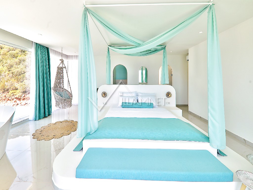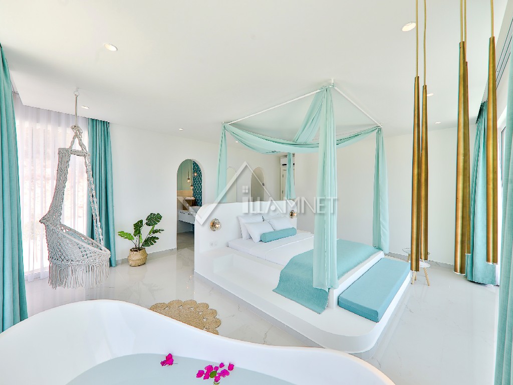 5.Yatak Odası: Çift kişilik yatak, komodin, elbise dolabı, klima, banyo ve tuvalet bulunmaktadır.