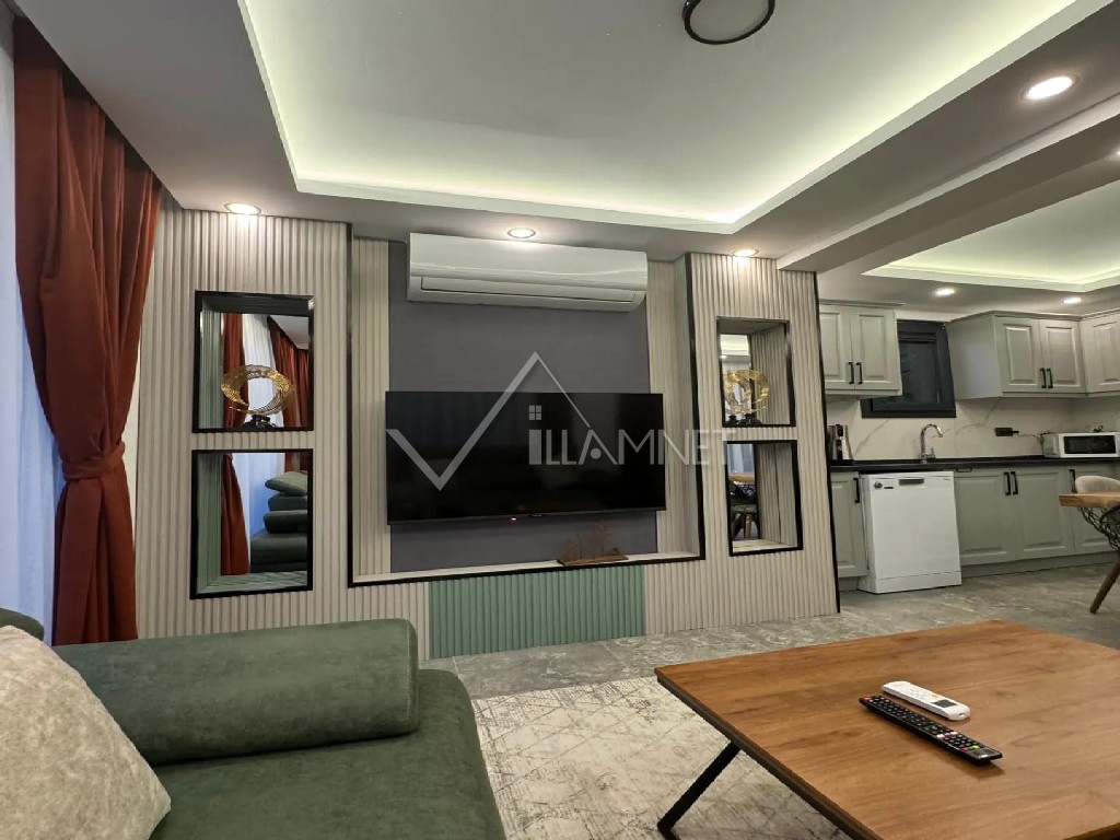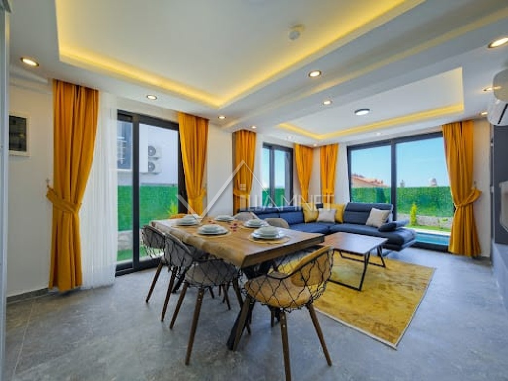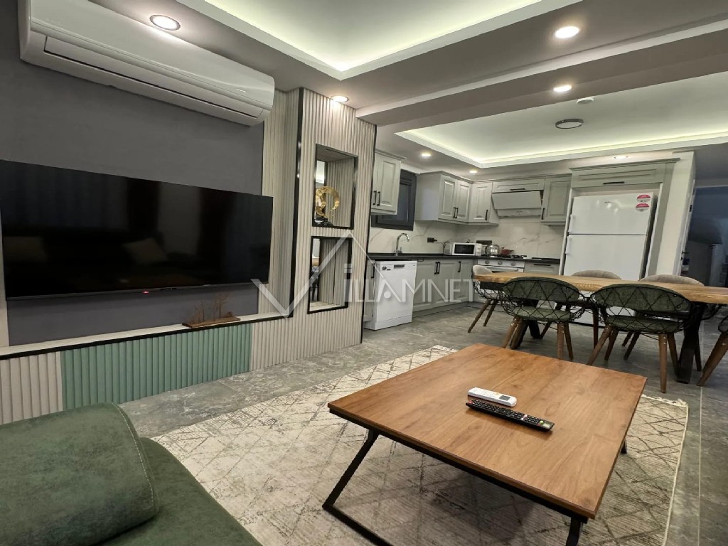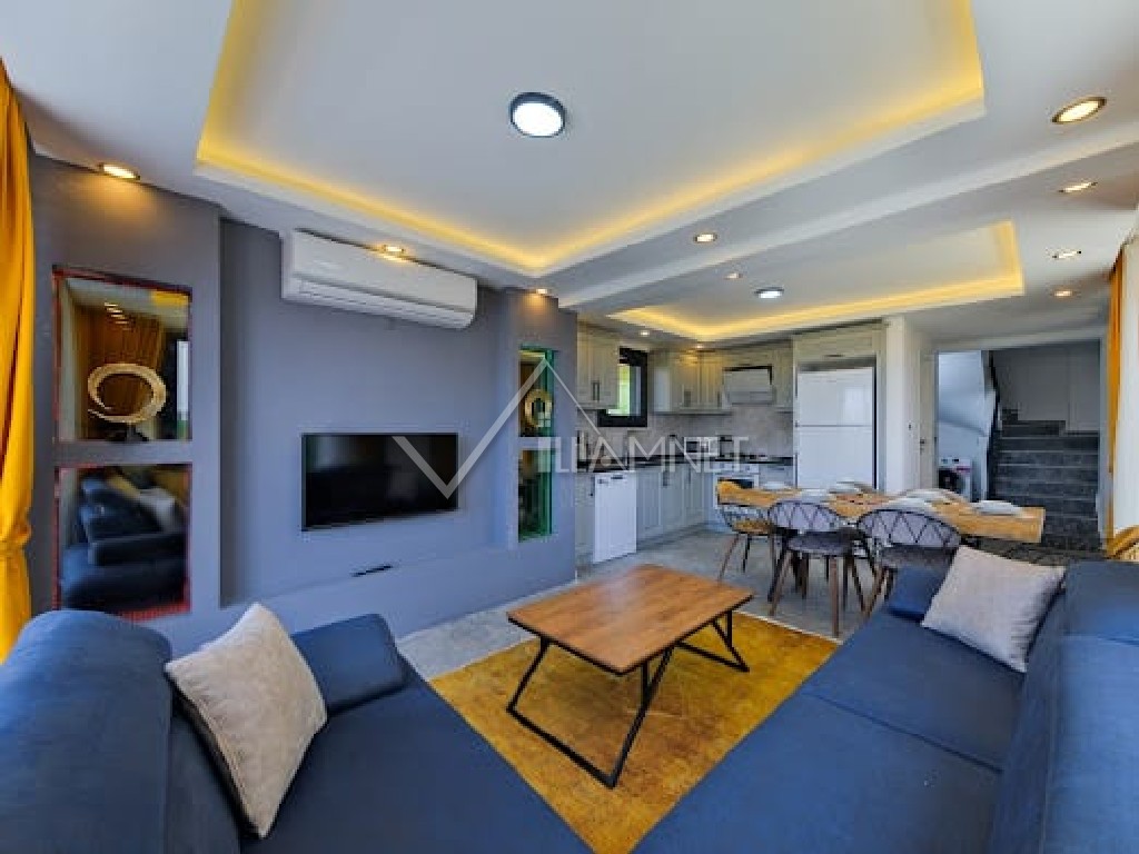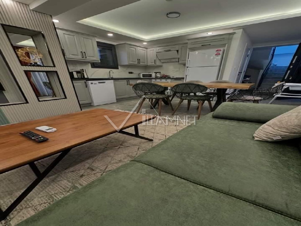 Salon : Modern tasarımlı, özenle dizayn edilmiş salonda şık ve rahat bir oturma grubu, yemek masası ve sandalyeler, televizyon, uydu alıcı, internet erişimi için wi fi, klima, bulunmaktadır.