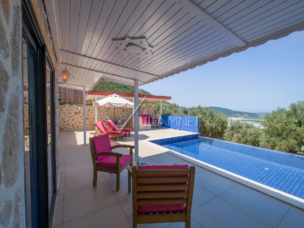 Villa Dream 3:Kalkan'ın, üzümlü bölgesinde 1+1 yatak odalı, 2 kişiye kadar konaklama kapasitesine sahip, balayı çiftleri için ideal bir tatil villasıdır. villamızda Modern, temiz ve ferah görünümlü, doğa ile iç içe bir villadır. villanın kendine ait özel bahçesi ve havuzu bulunmaktadır.
