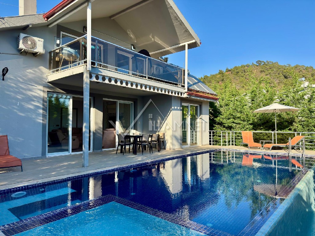 Bahçe : Özel bahçe içinde villaya ait özel yüzme havuzu, şezlong, şemsiye, masa ve sandalyeler, mangal bulunmaktadır.