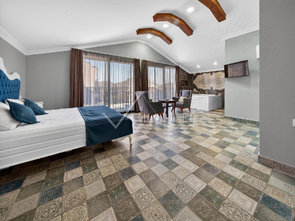 1. Yatak odası : 1 adet çift kişilik yatak, elbise dolabı, komodin, klima, banyo ve tuvalet ve jakuzi bulunmaktadır.