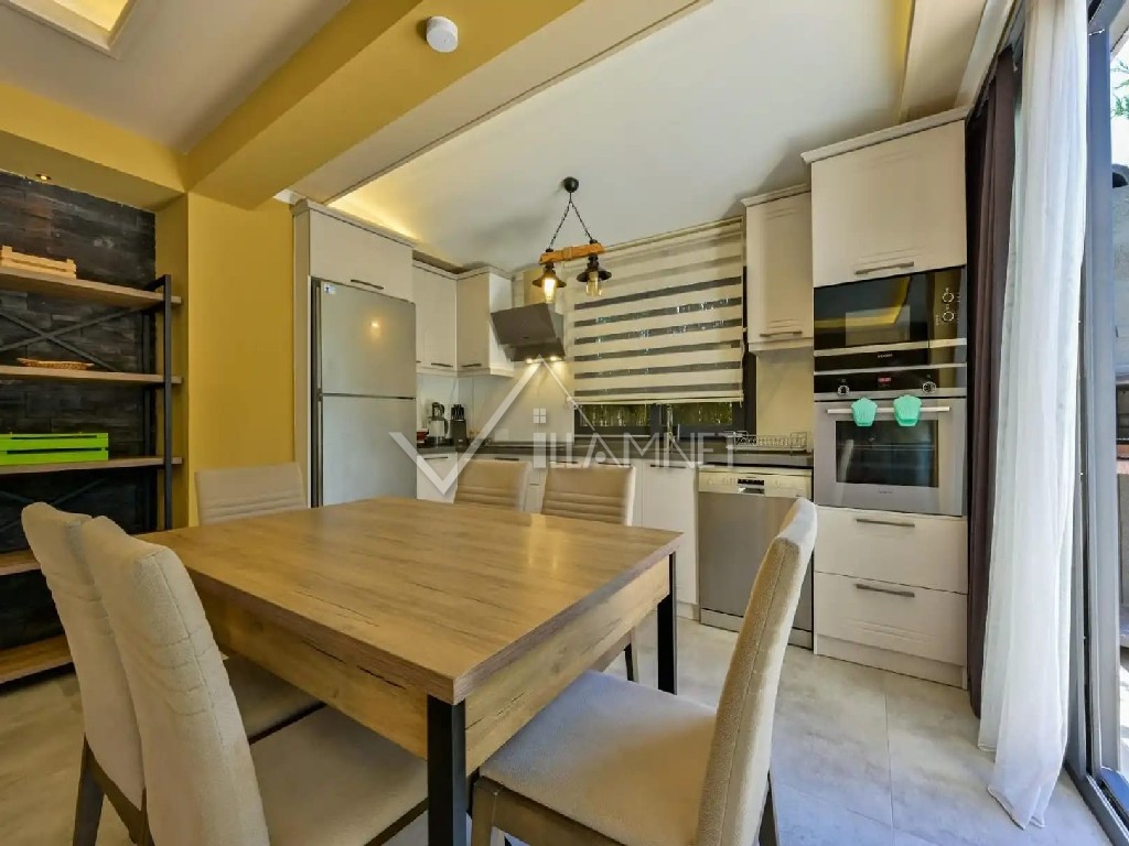 Mutfak : Amerikan tarzı mutfakta , buzdolabı, çamaşır makinası, fırın, 4'lü ocak seti, masa ve sandalyeler, havuz terasına çıkış bulunur.