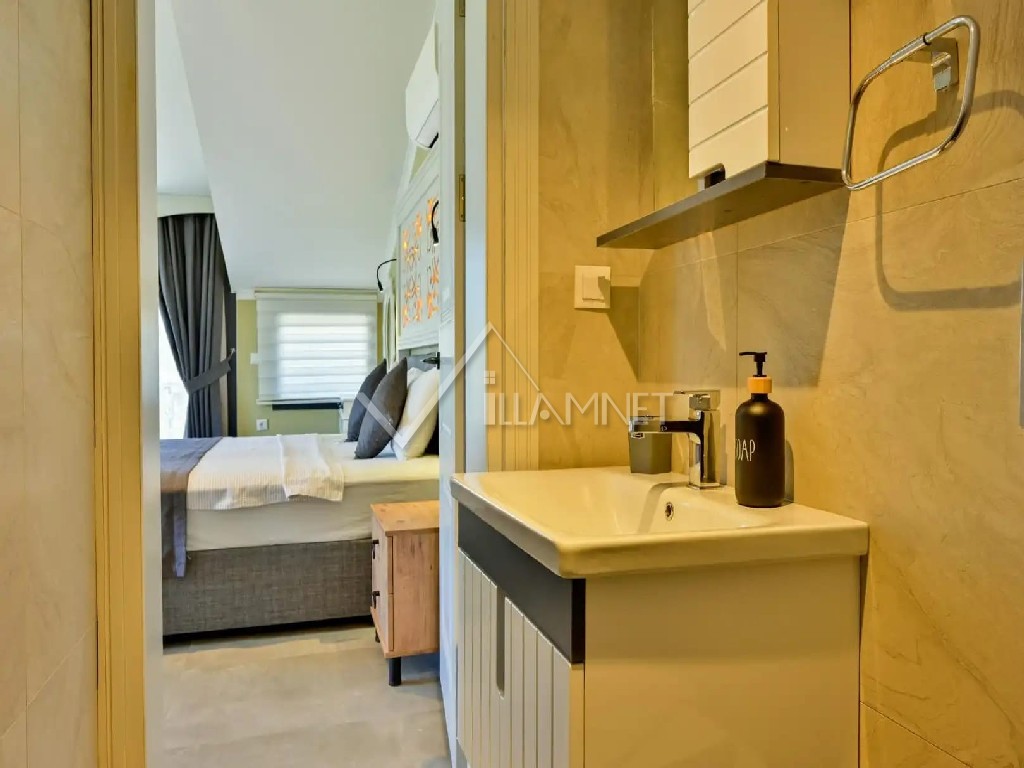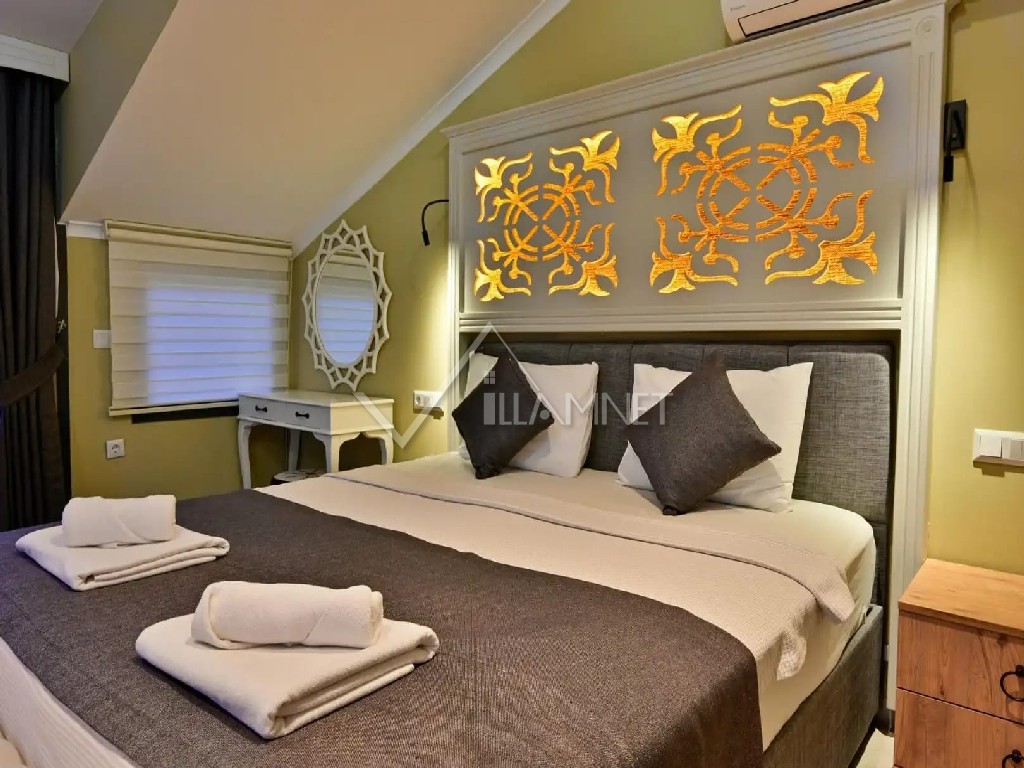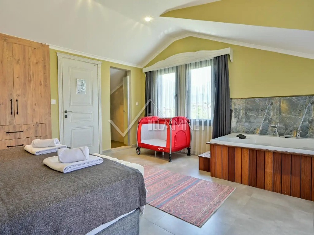 4. Yatak Odası: 1 adet çift kişilik yatak, elbise dolabı, banyo jakuzi, klima bulunmaktadır.