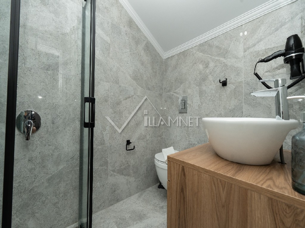 Salon : Modern tasarımlı, özenle dizayn edilmiş salonda şık ve rahat bir oturma grubu, yemek masası ve sandalyeler, televizyon, uydu alıcı, internet erişimi için wi fi, klima, bulunmaktadır. Salondan havuz kenarına direkt çıkış vardır.