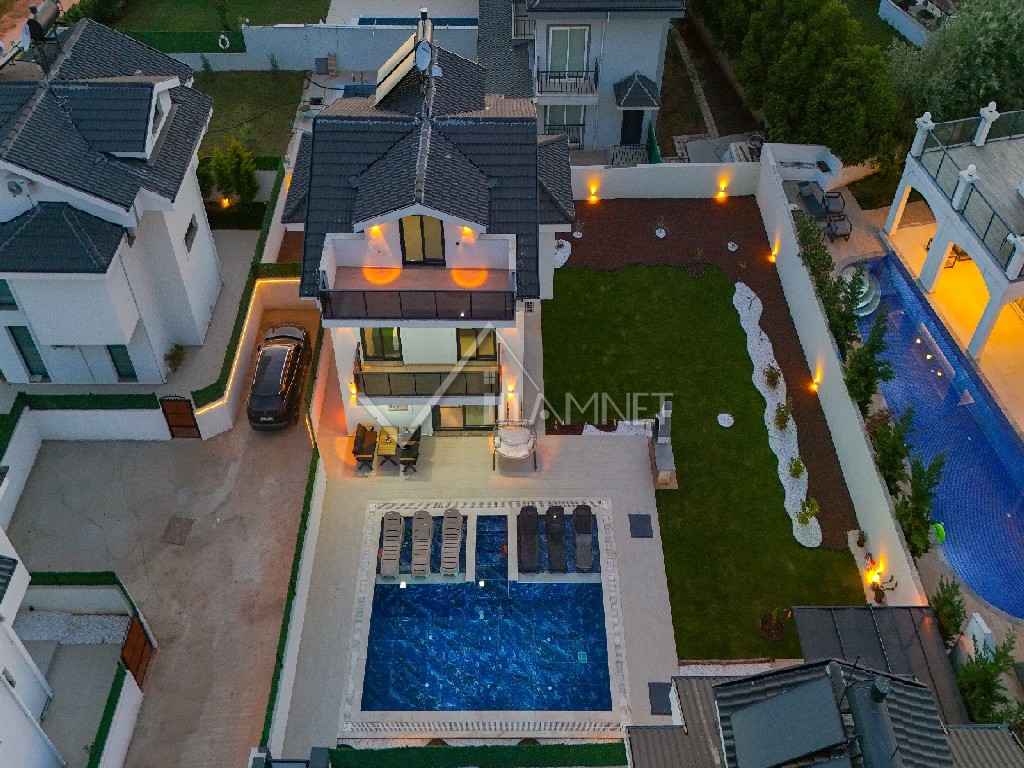 Bahçe : Özel yüzme havuzu bulunmakta olup havuz başında güneşlenme terası, şezlong ve şemsiyeler, mangal, masa ve sandalyeler bulunmaktadır.