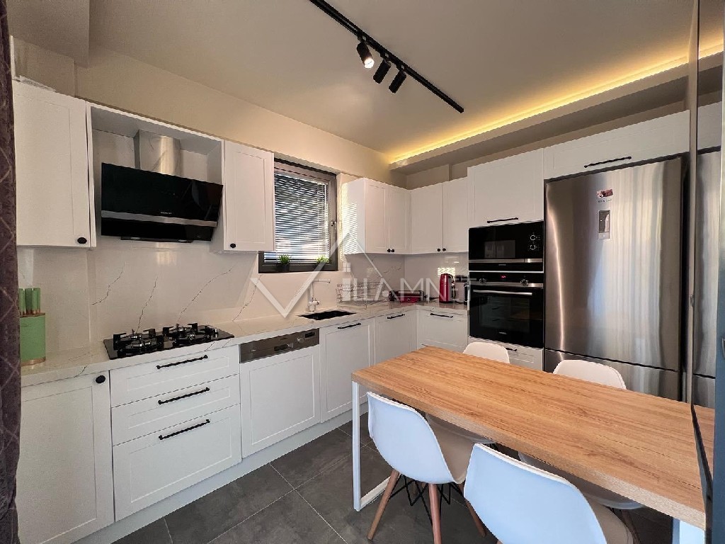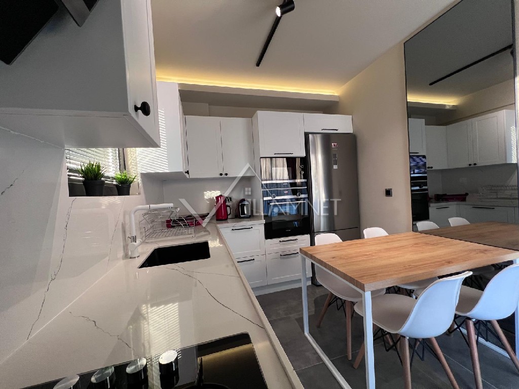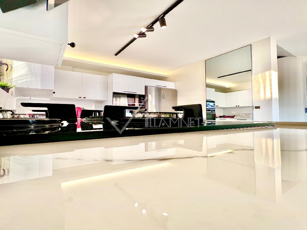 Mutfak : Amerikan tarzı mutfakta , buzdolabı, çamaşır makinası, fırın, 4'lü ocak seti, masa ve sandalyeler, havuz terasına çıkış bulunur.