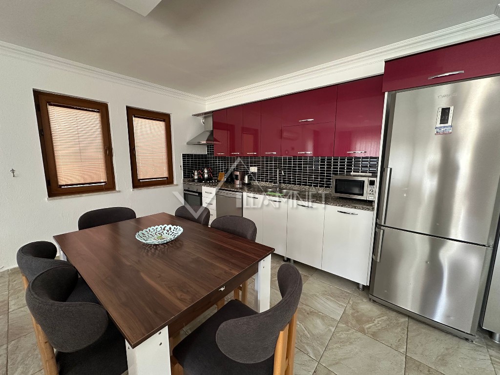 Mutfak : Amerikan mutfak tarzında dizayn edilmiş mutfakta yemek masası ve sandalyeler, bulaşık makinası, çamaşır makinası, buzdolabı, fırın, mikrodalga fırın, kettle, ankastre 4'lü ocak ve aspiratör, çaycı, tabak, tencere, mutfak araç gereçleri vs. bulunmaktadır.