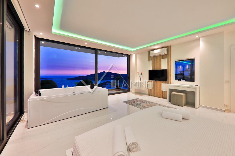 2. Yatak Odası : 1 adet çift kişilik yatak,suit oda deniz manzaralı yatak, tv, klima, komodin, elbise dolabı,jakuzi, ebeveyn banyo ve wc, bulunmaktadır.