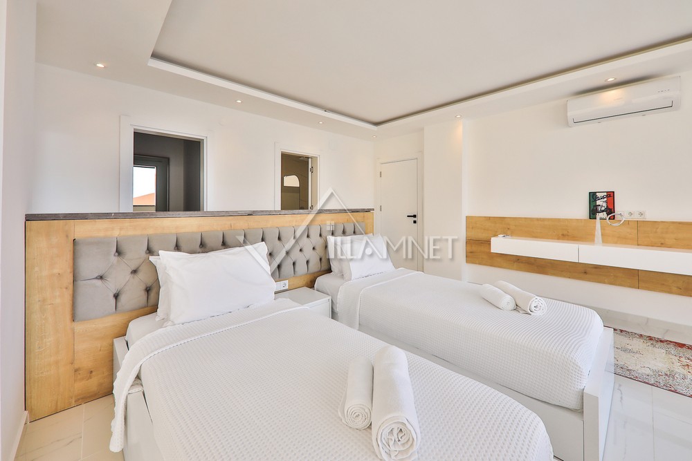 3. Yatak Odası : 2 adet tek kişilik yatak, klima, komodin, elbise dolabı, jakuzi, ebeveyn banyo ve wc bulunmaktadır.