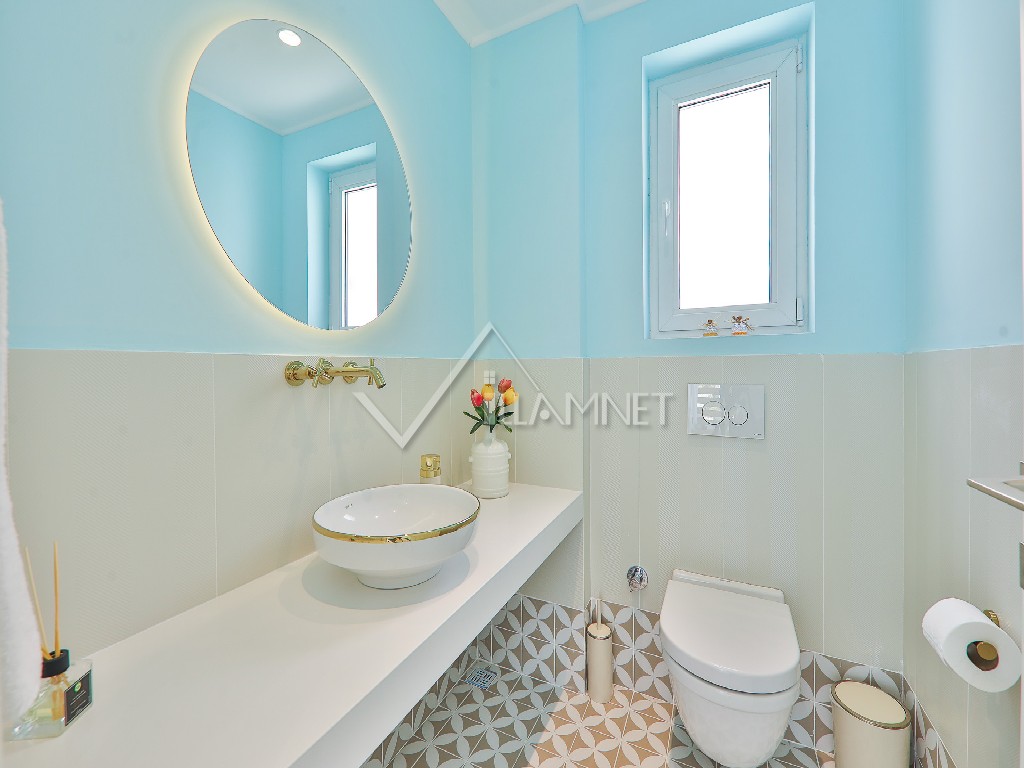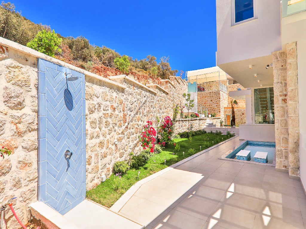 Bahçe : Özel yüzme havuzu, şezlonglar, şemsiye, masa ve sandalyeler, bahçe oturma grubu, barbekü, bulunmaktadır.