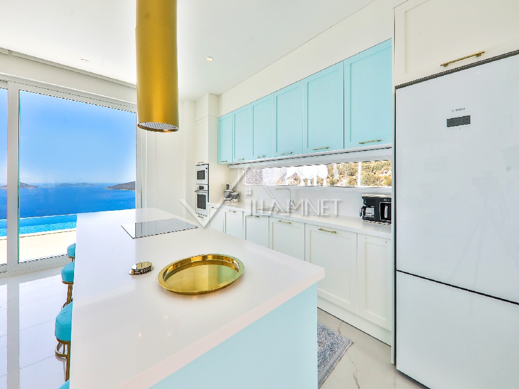Mutfak : Modern Amerikan mutfak içerisinde yemek masası ve sandalyeler, buzdolabı, çamaşır makinası, bulaşık makinası, ankastre fırın, mikrodalga fırın, 4'lü ocak, tost makinası, ekmek kızartma makinası, çay makinası, Kahve makinası, elektrikli su ısıtıcısı, yemek takımı, çatal bıçak seti, tencere ve tava takımı, bardaklar bulunmaktadır.