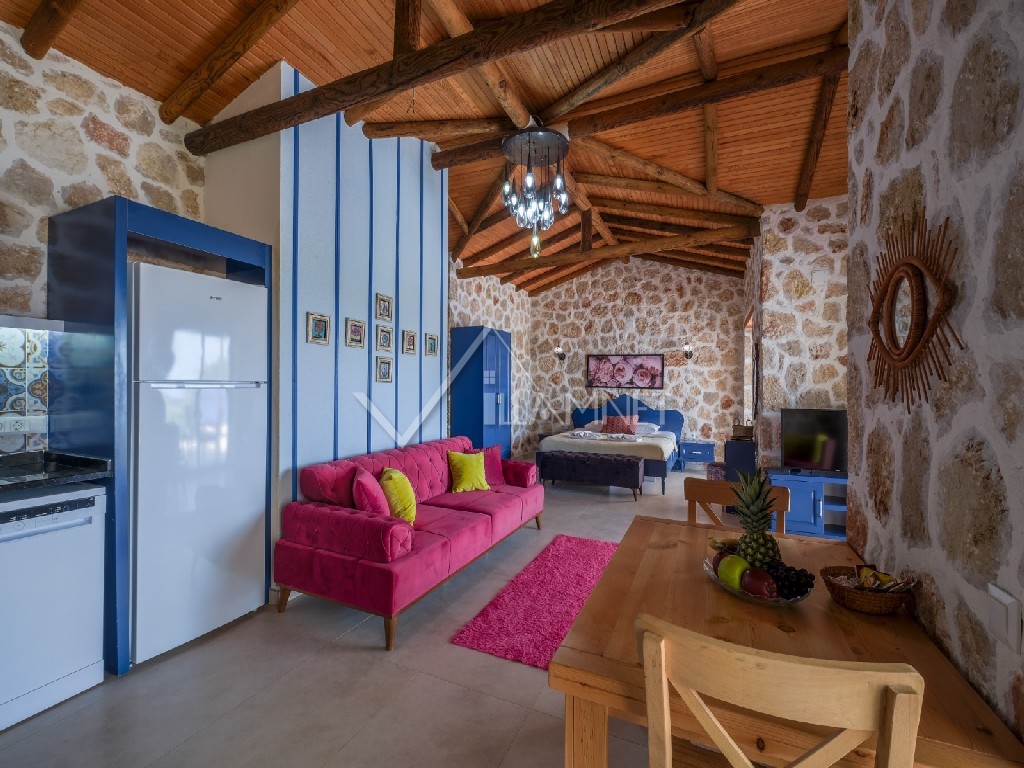 Villa Dream 3:Kalkan'ın, üzümlü bölgesinde 1+1 yatak odalı, 2 kişiye kadar konaklama kapasitesine sahip, balayı çiftleri için ideal bir tatil villasıdır. villamızda Modern, temiz ve ferah görünümlü, doğa ile iç içe bir villadır. villanın kendine ait özel bahçesi ve havuzu bulunmaktadır.
