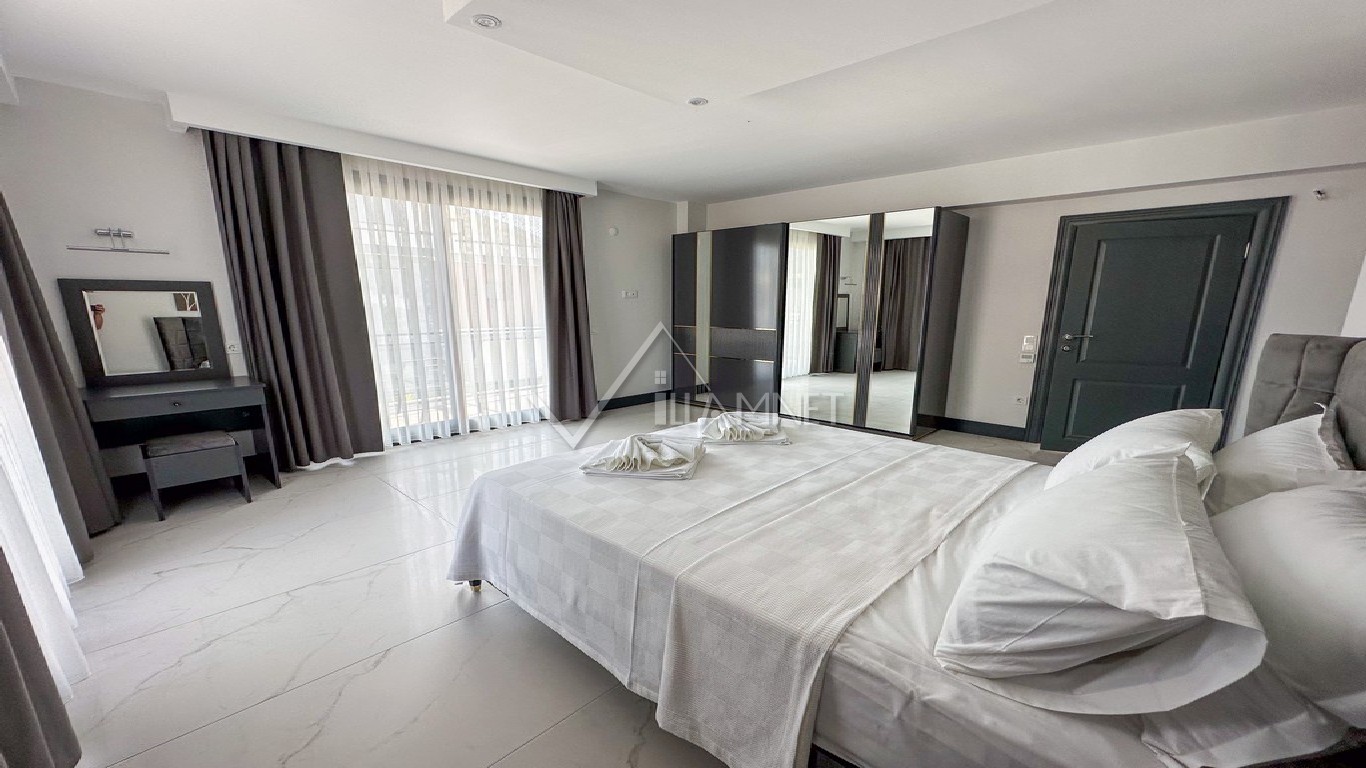 4. Yatak Odası: 1 adet çift kişilik yatak, komodin, elbise dolabı, klima, banyo, wc bulunmaktadır.