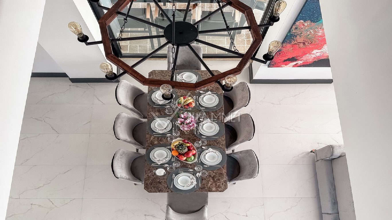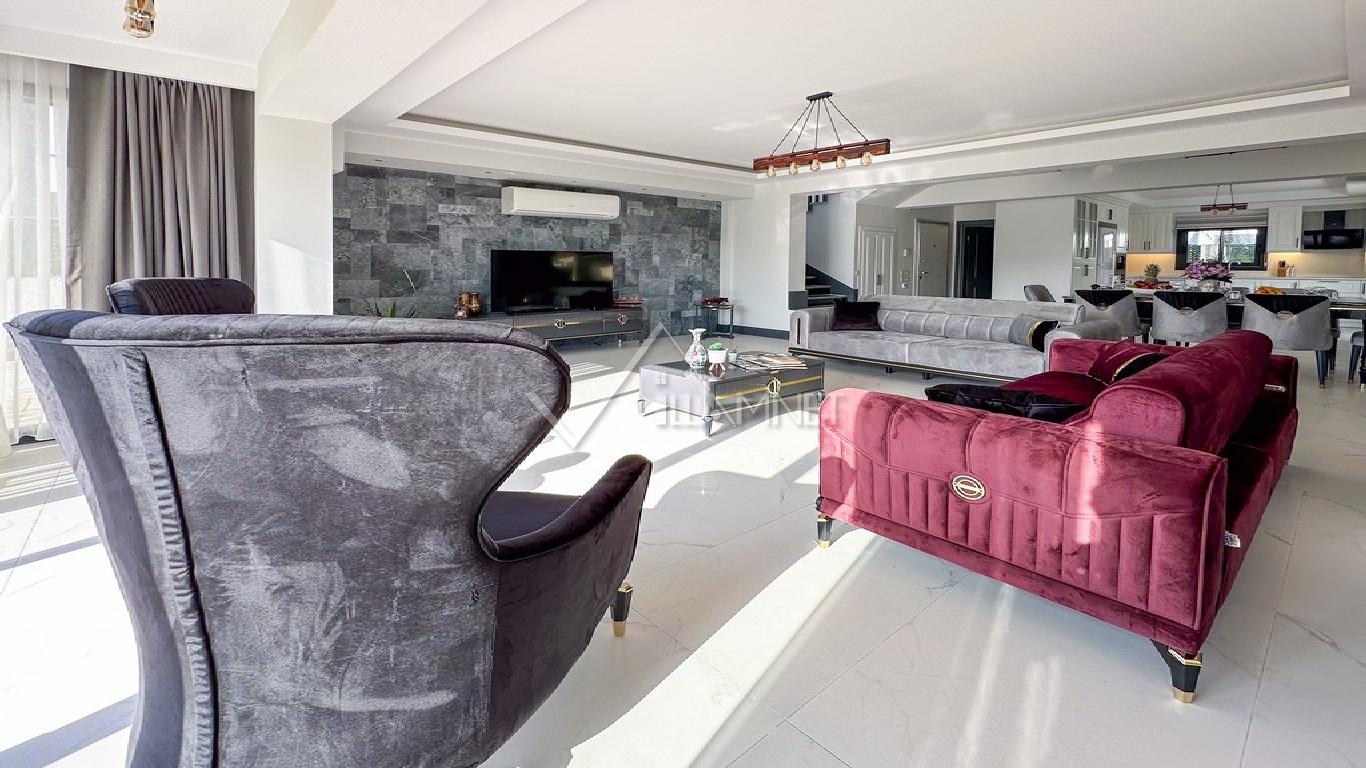 Mutfak : Amerikan tarzı mutfakta , buzdolabı, çamaşır makinası, fırın, 4'lü ocak seti, masa ve sandalyeler, havuz terasına çıkış bulunur.