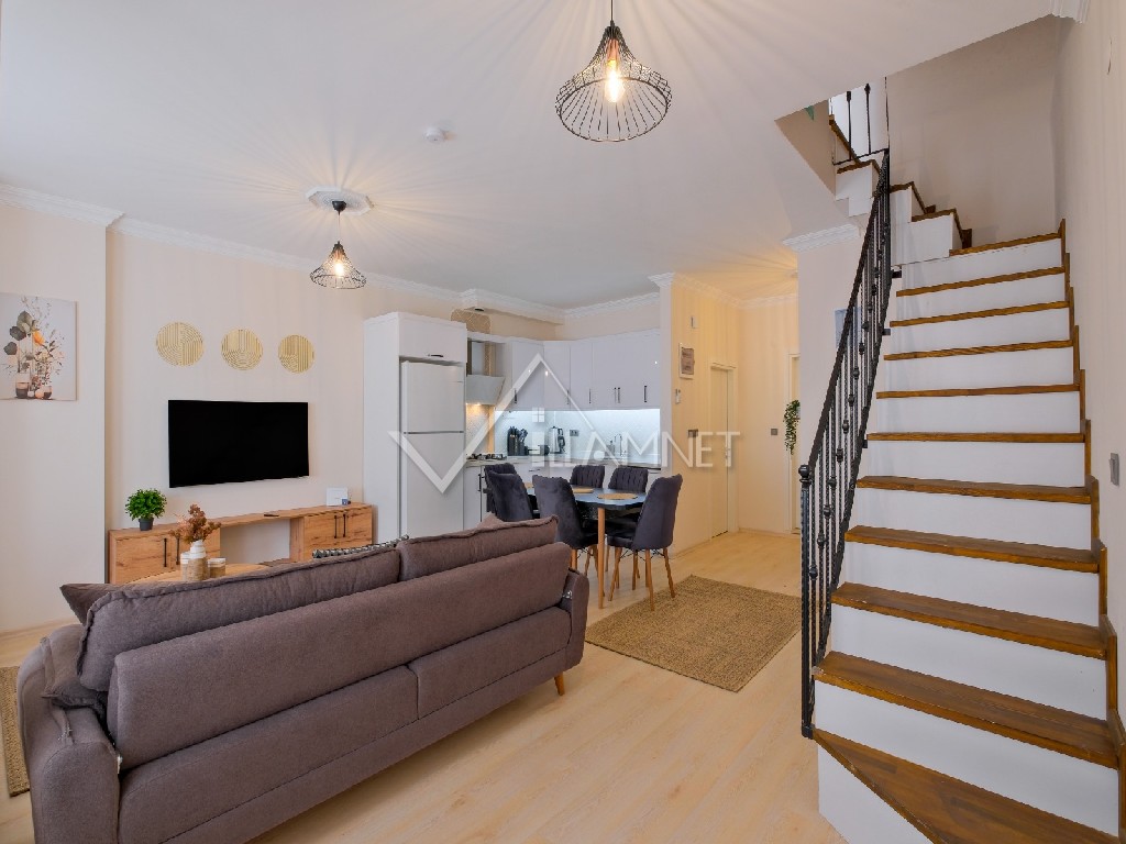 Salon : Özenle dizayn edilmiş açık mutfaklı salonda şık ve rahat bir oturma grubu, yemek masası ve sandalyeler, televizyon, uydu alıcı, internet erişimi için wi-fi, klima bulunmaktadır.