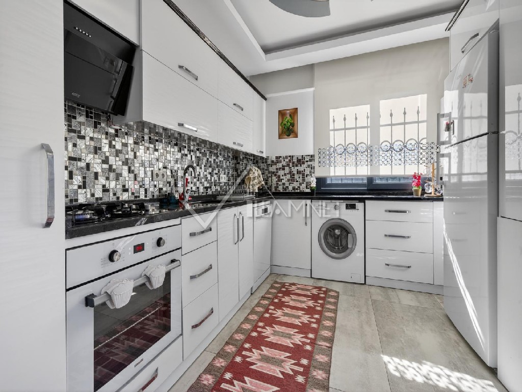 Mutfak : Modern Amerikan mutfakta buzdolabı, çamaşır makinası, bulaşık makinası, fırın, ankastre 4'lü ocak, elektrikli su ısıtıcısı, yemek takımı, tost makinası, çaycı, kahve makinası, çatal bıçak seti, tavalar, tencereler, bardaklar, mutfak araç ve gereçleri bulunmaktadır.