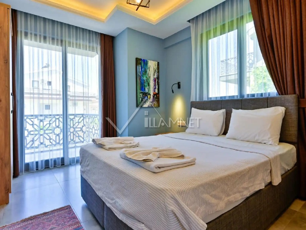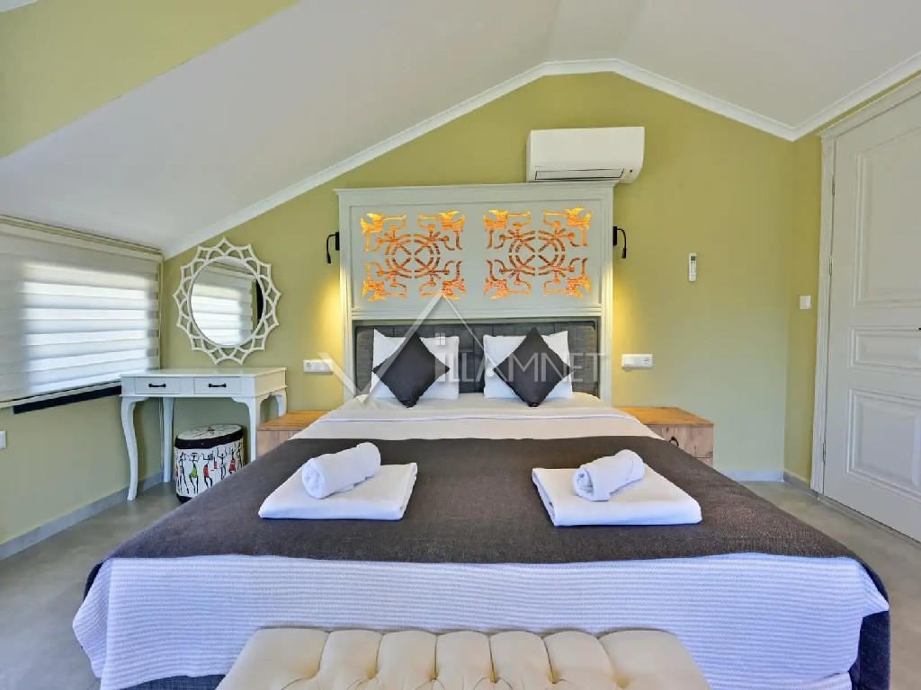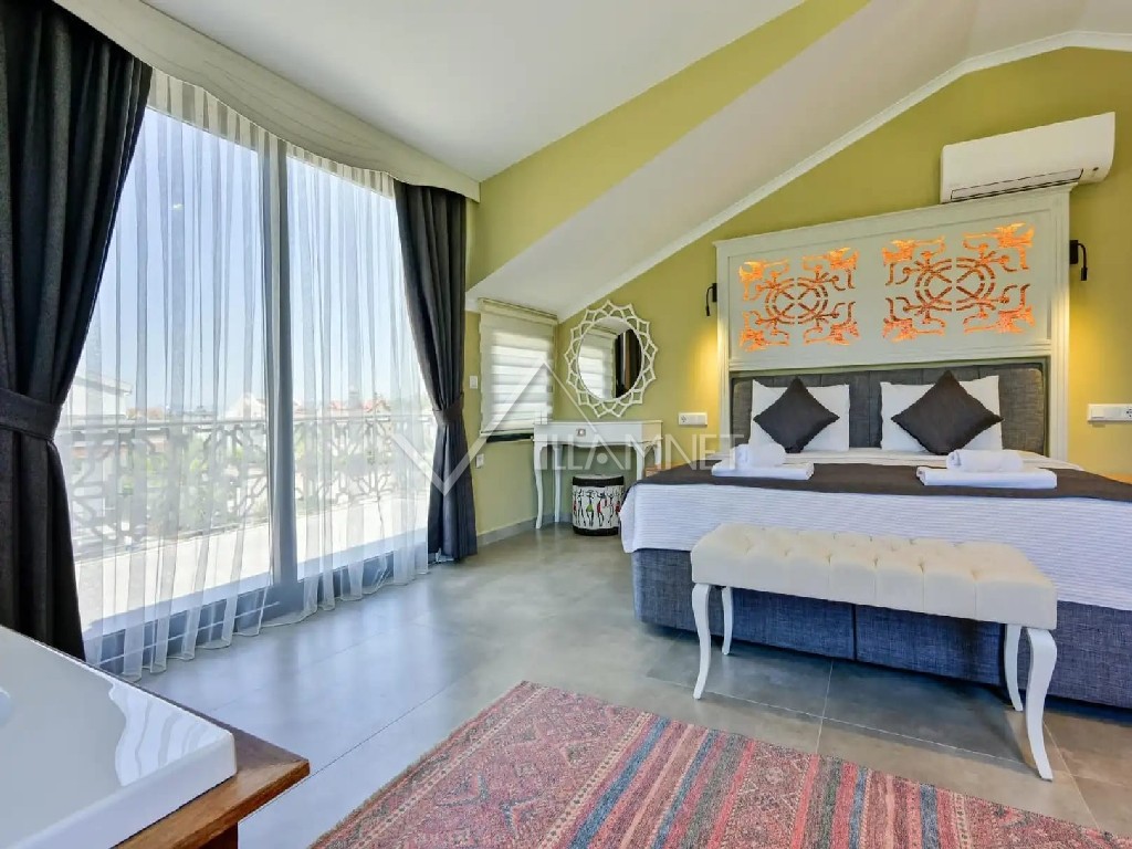 4. Yatak Odası: 1 adet çift kişilik yatak, elbise dolabı, banyo jakuzi, klima bulunmaktadır.