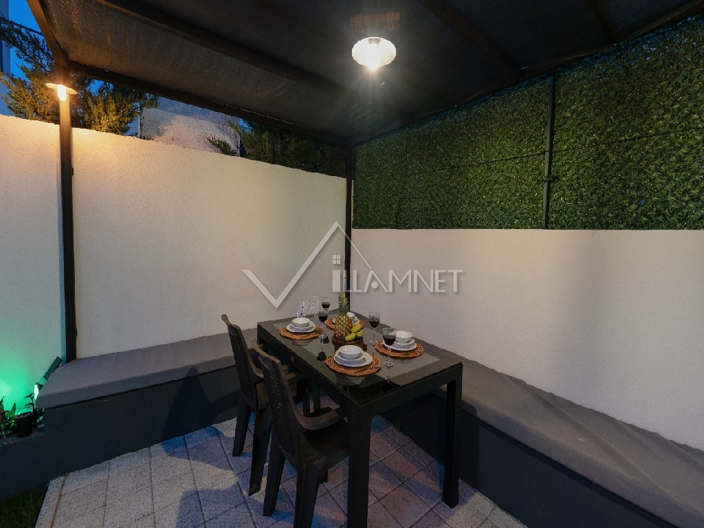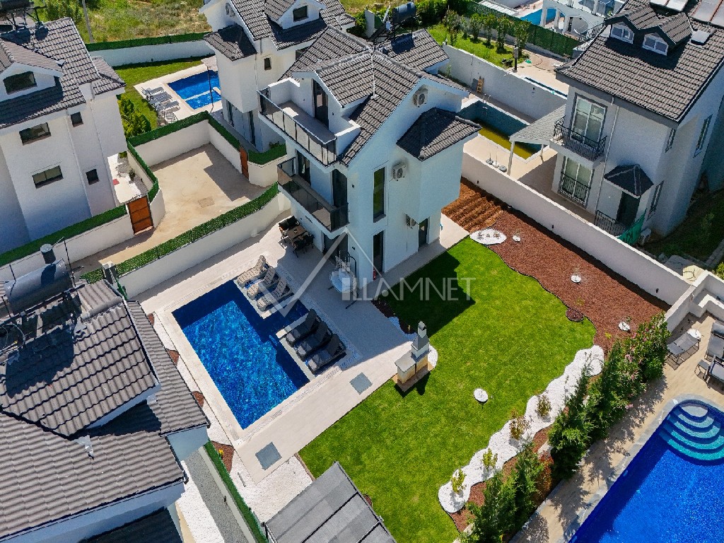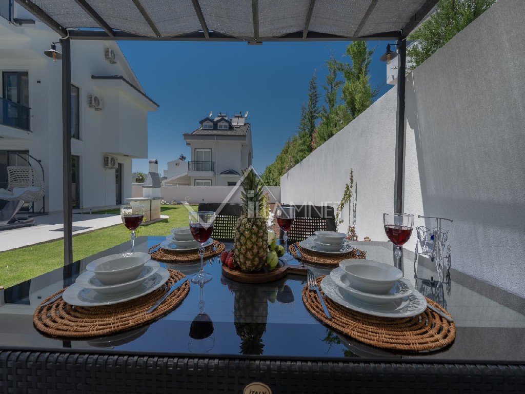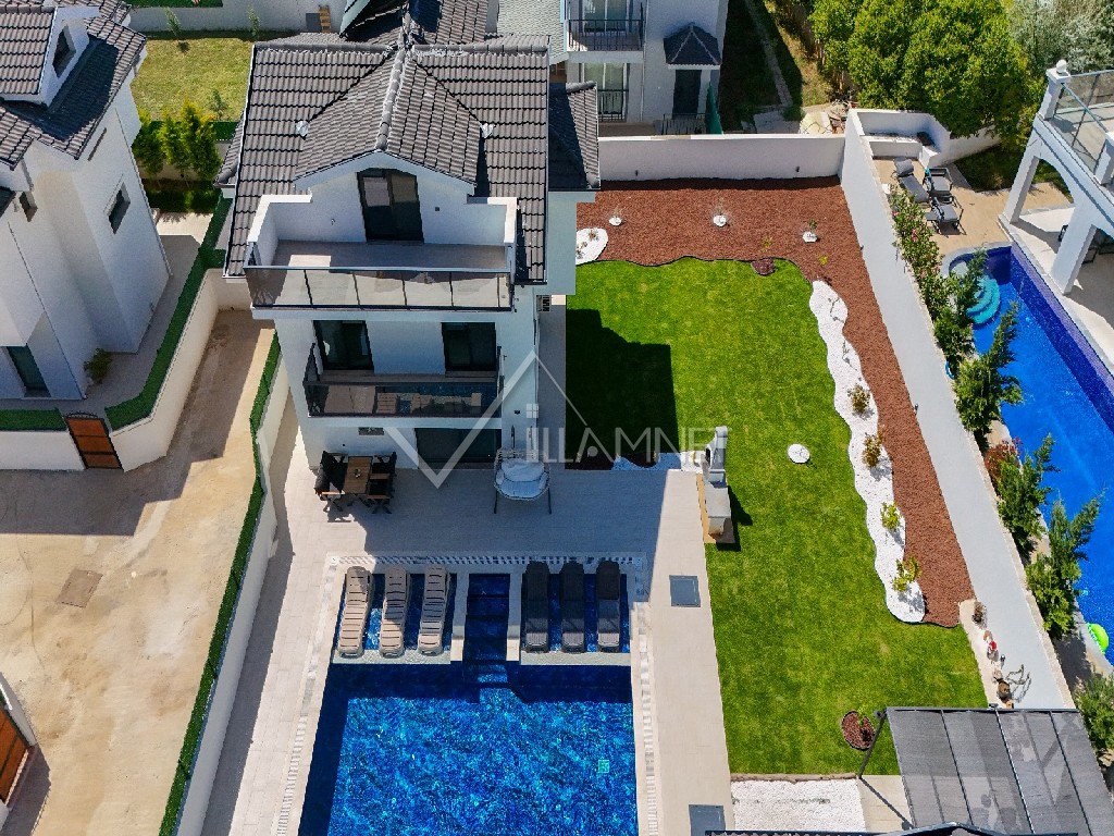 Bahçe : Özel yüzme havuzu bulunmakta olup havuz başında güneşlenme terası, şezlong ve şemsiyeler, mangal, masa ve sandalyeler bulunmaktadır.
